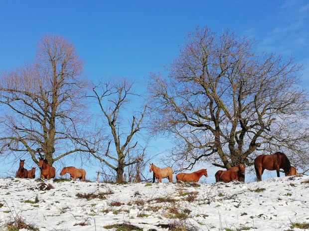 Отваряме външната врата …пред нея стоят стадо коне и кротко пасат, връз поляна,покрита с 20 см сняг, небето е невероятно синьо, няма нито едно облаче и пече слънце като през Май!