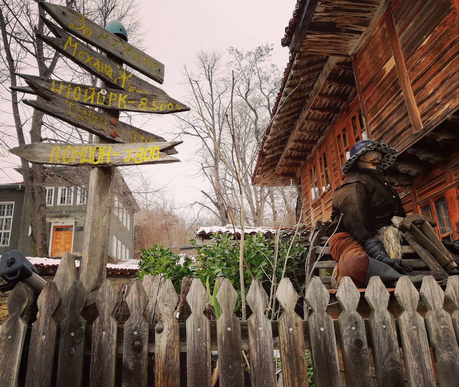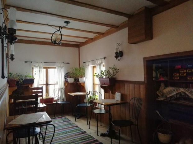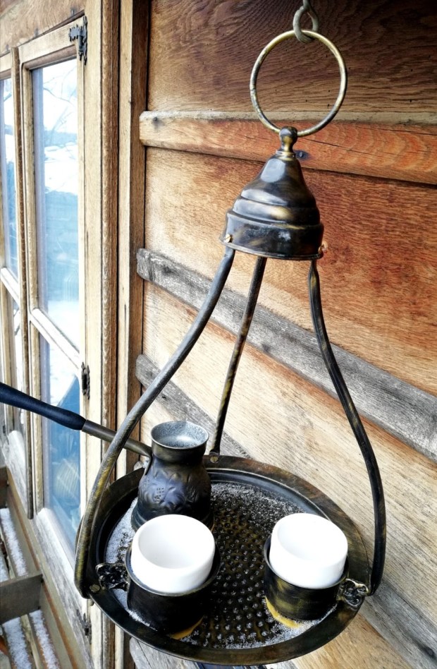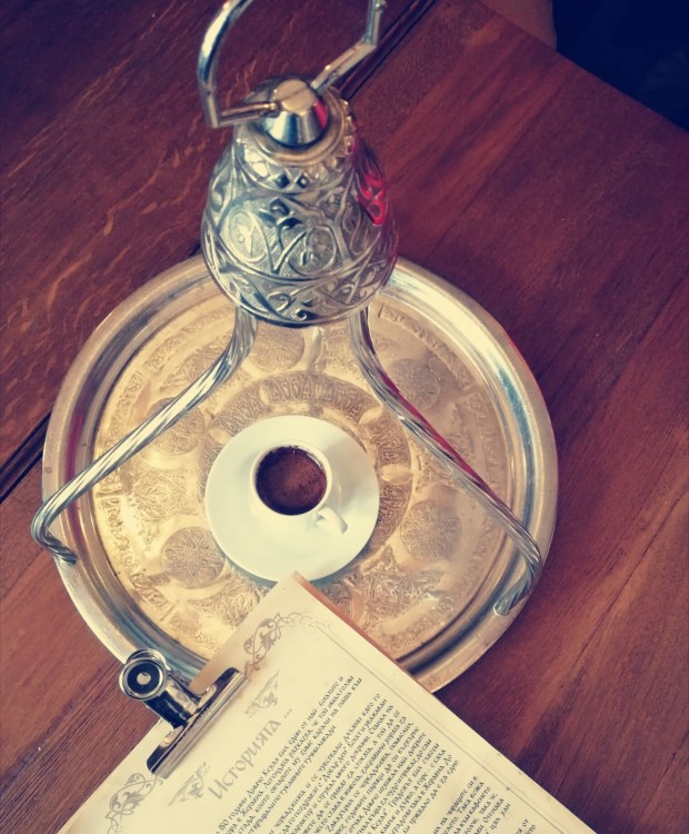 Уви, камината не топлеше, сякаш само светеше 😀 и затова на бърза ръка се запознахме с историята на къщата, още по-набързо си изпихме кафето на пясък, което ни направиха, успяхме и да си гледаме, плътна утайка имаше, мнооого линии и фигури излязоха ….все хубави работи си предрекохме, взехме си последните захарно петле и пестил от витрината и си тръгнахме по живо по здраво..