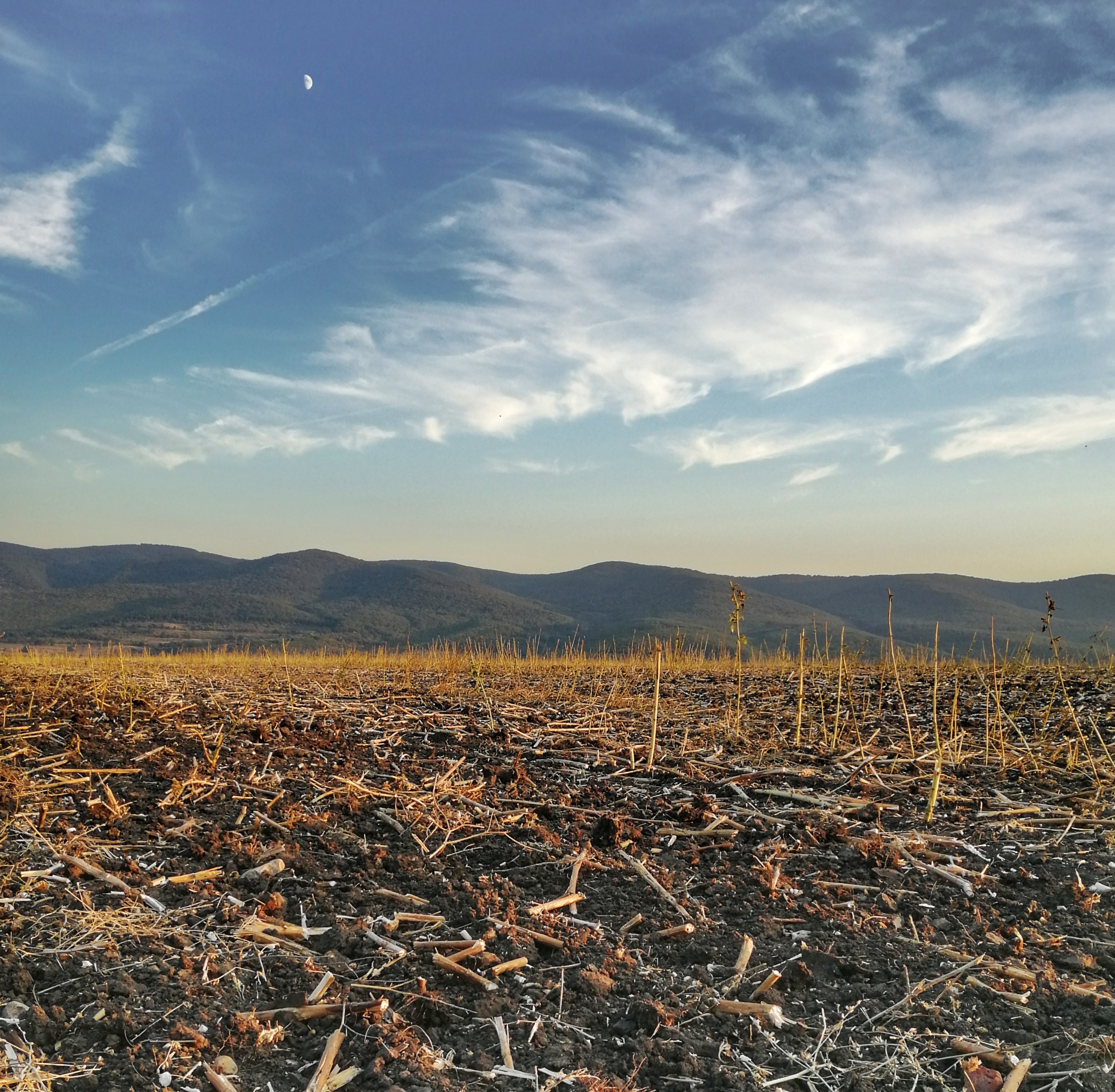 Чист въздух в радиус от километри. Събуждаме с гледка към планината в далечината, а в пазвата й различните цветове на полетата. Когато бяха цъфнали слънчогледите, хоризонта преливаше от ярко жълто към тъмнозелено. Сега е есен и ред идва на тракторите, с неуморно впрегнати плугове. Вечер се разхождам по пътя между полетата , Максим заспива лесно защото друса.. Разминавам се с един овчар, мога да му кръстя стадото „Козите сигурно са полудели!“ скачат навсякъде, чак стряскащо, не знам накъде да ходя, защото и те не си знаят пътя.. 🤣