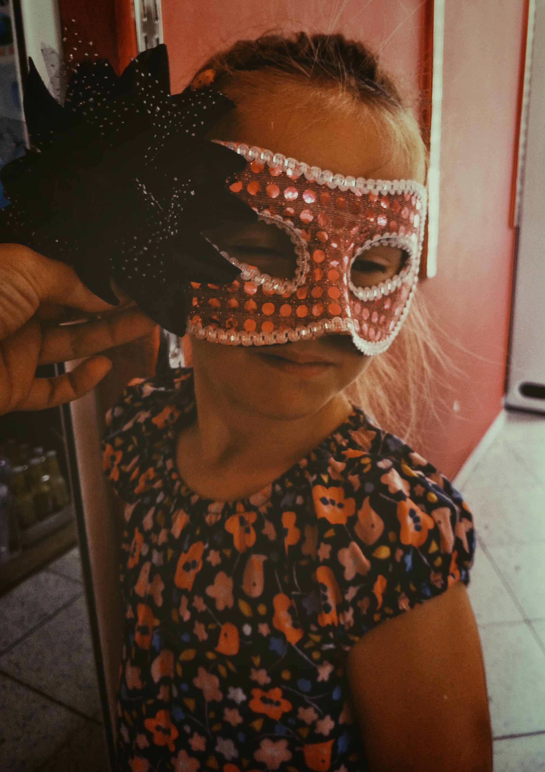 В последно време си мъкне всякакви дрънкулки в леглото, което е на втория етаж, има си палатка от Икеа, там и прилича на старите карети от уестърнските филми.. Сложила е около 4 възглавници, гердани, малки изрезки на картинки от корнфлейкс, части от пъзели, за да не ги докопа Макси, иначе тя не играе с тях, кутийка от парфюм пълна с фибички, друга кутия пълна със стикита и още 5 различни кой знае с какви неща… И много обича светещи джунджирии, като е шукар поне да е светещ… Наскоро й подарихме лампа еднорог с крушчици, татко й вчера й донесе няколко свещи на батерии.. И двамата, знаехме че ще се озоват в леглото й. И изобщо всичко там горе, прилича на мексикански олтар по време на Dia de Muertos, някакъв детски, добре организиран хаос, в който всичко има своето място и ако случайно нещо не е на мястото си, веднага се забелязва и започва да вдига панаири както само шест годишните могат да вдигнат, липсва й само треперене в лявото око, за да се опише колко е драматично положението !