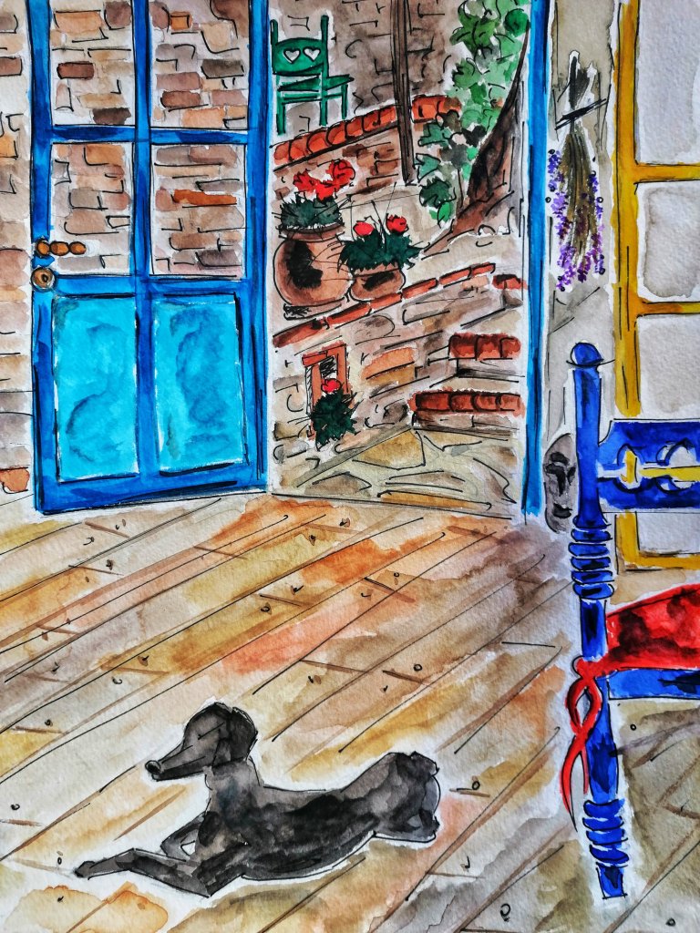 По обед все си цъкам 24 kitchen. С тях пътешествам виртуално. Сипах си червено винце, в чашката цопнаха две парченца ябълка, намазах си една триъгълна филийка с крема сирене, метнах някое друго резанче херинга отгоре и казах наздраве на Рик Стейн. Е.. Днес се разминава кухнята ни брачед! -казах му. Той е в Мексико и яде тортили, но пък се пренесох с него на топло и слънчево… Еееех Рико, колко ти е хубаво на тебе…! Всеки път си мисля, нищо че все се оплаква, че в еди коя си страна му свили ленд крузера по време на снимки… И се замислих.. За топлото, за онова южно топло, на което синьото му е определящият цвят…Сякаш се ширва един простор, в който няма граници и ти живееш, блажен бохемски живот, насред топъл пясък и малки мидички, които е изхвърлил морето. И там времето е спряло, но по хубавия начин… И ходя боса и Вивата и тя.. И Ричо все пита:Джинке, не ти ли боцка земята…? Не, Ричо толкова ми е ръбеста и удобна… И топло е, направо е мазна, тексаска жега…Но се утоляваш под сянката на смокините, я сок сок от бъз, я с джин тоник…!