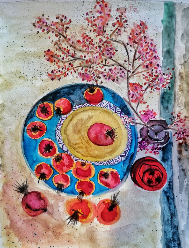 Маргаритите в кофата до вратата са на път да цъфнат и ги чакам с нетърпение..Разпръснах четите в бурканчето с вода, отворих боите и си потърсих цветовете… Денят ми е добър!