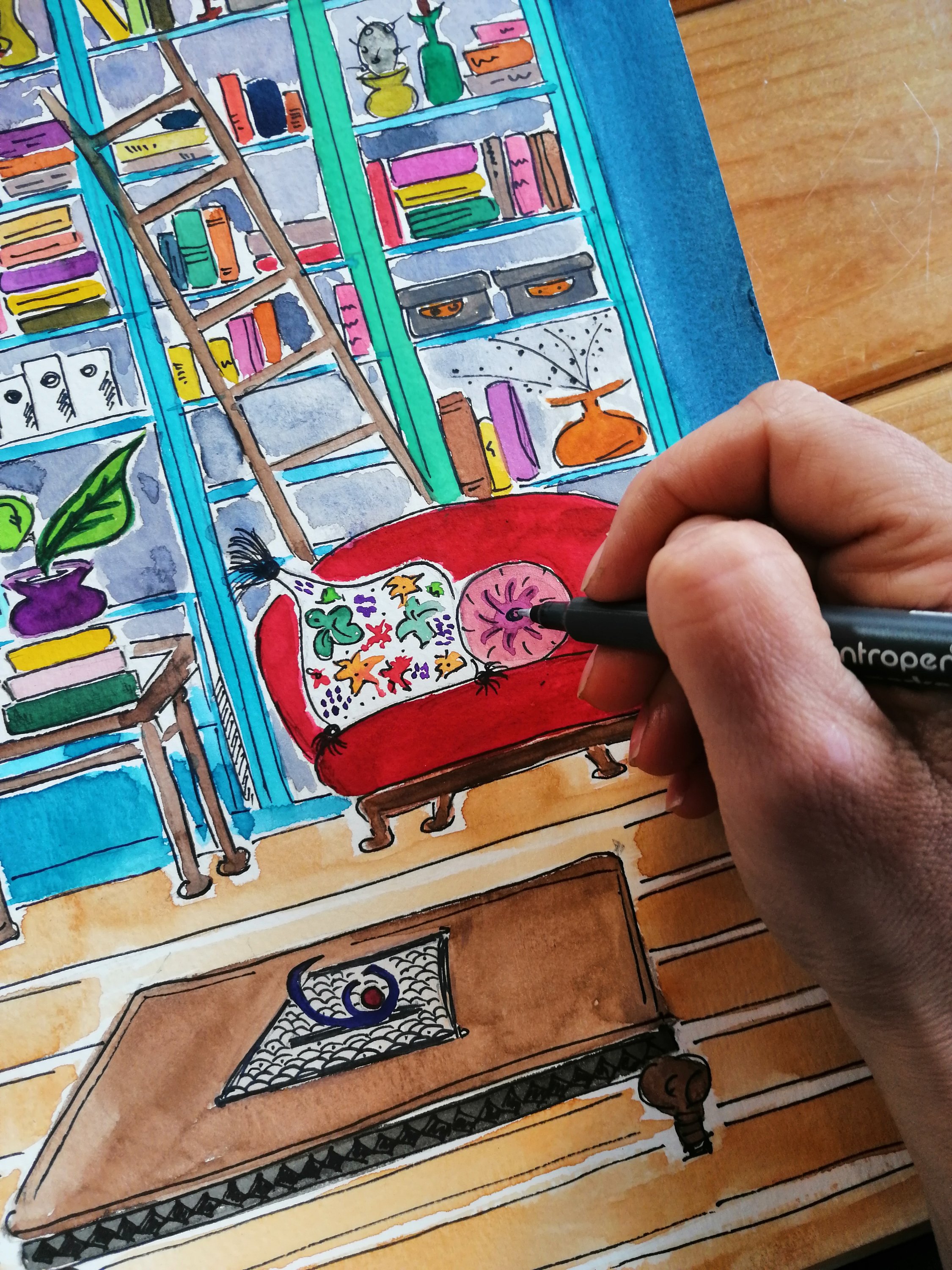 Имам си вити дървени стълби, които ме водят към вторият етаж.. Там са леглото и масата, върху която има безброй моливи, листи, всякакви бои и скречове, започнати и недовършени… Колко съм голяма ли…. Малко над 25…Работя като илюстратор към списание за интериор. Въобще аз съм малката Garance Dore… Обичам да скицирам, да снимам, че и да блогърствам…