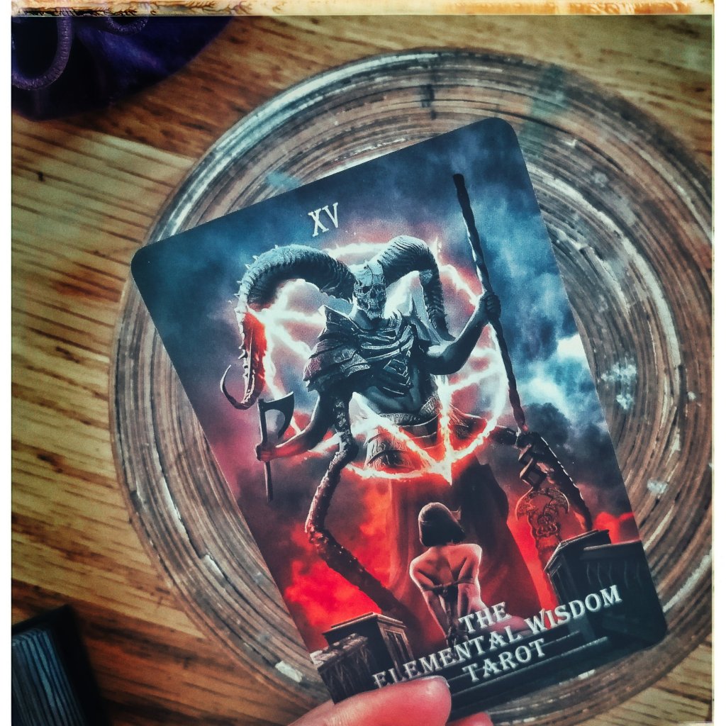 Достигам най-накрая до кутийката, отварям я.. (Тя е във вид на дебела книга) и вътре първата карта която сочеше към мен беше тази на „ДЯВОЛЪТ“, а на гърба му „СПРАВЕДЛИВОСТТА“ Бяха демо на карти от друго тесте…